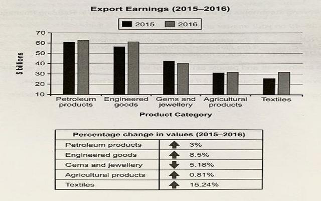 , the proportion changes in almost categories tended to rise from 2015 to 2016 excluded gems and jewellery Linking Words