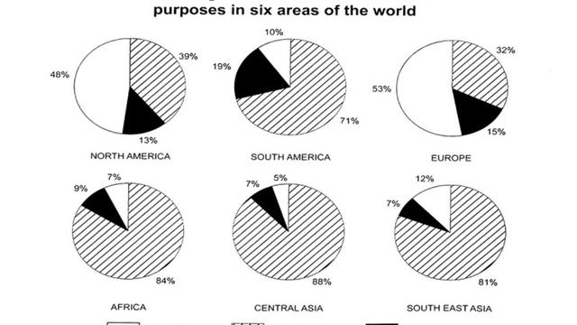 The pie charts compare the percentage of the three main uses of