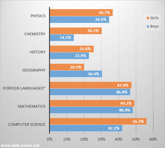 Foreign Language, Mathematics, History and Physics are the four subjects that have nearly Use synonyms