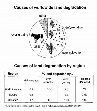 land degradation during the 1990s. The first was over-grazing (35%), followed by deforestation (30%) and over-cultivation (28%). Change preposition