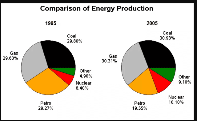 In 2005, coal and gas shared approximately Use synonyms