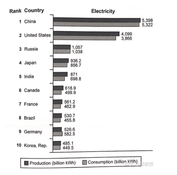 8 remaining countries were relatively similar in figure. Meanwhile, Germany was the only country that consumed more current than the amount they made and Russia had both almost equally.