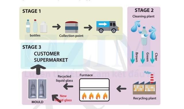point, heating the liquid continues and they begin to change their current state gradually from solid to liquid. Having completed all the steps, the hot liquid is poured into a moulding machine to make new containers of different shapes. Linking Words