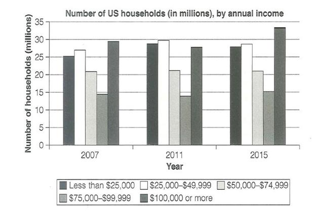 of households whose annual income ranged from 25000 to 99999$ was approximately constant. Despite Use synonyms