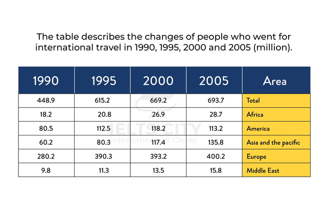 In detail, there are the least changes in visitors in the Middle East, with 9.8 in 1990 and Linking Words
