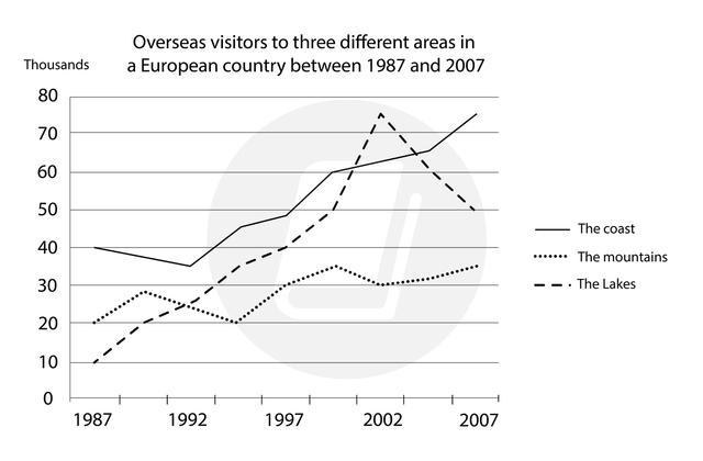 , the line graph indicates the substantial growth in tourism in all three countries of Europe. At the beginning of the period, the most considerable area was the coast. Linking Words