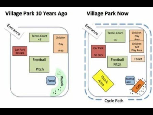Ten years later, it is evident that there are significant changes in the second map. There is a 50-car parking space Change the spelling