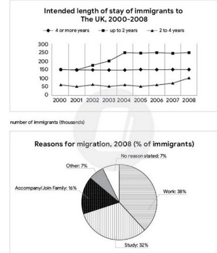 The pie diagram illustrates the initial reason migrated to the UK was working with 38%. Linking Words