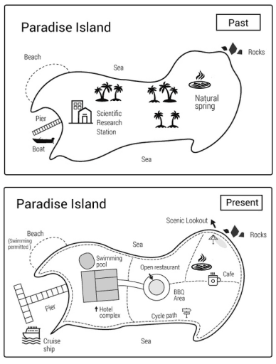 to visit the beach . The natural spring in the east remains but a new café has been built nearby.Verb problem