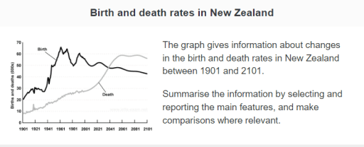 The presented line graph demonstrates the data on death and birth rates in New Zealand from 1901 to nowadays with the forecast until 2101.